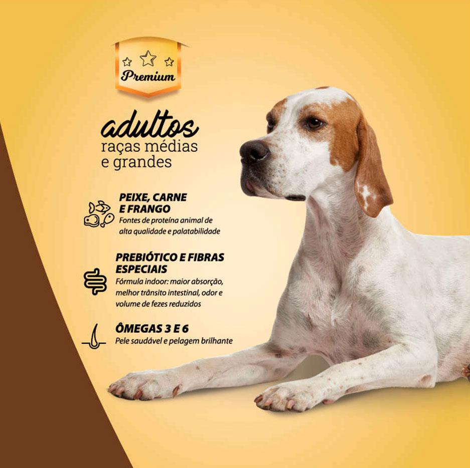 - Contém polpa de beterraba, prebiótico (mananoligossacarídeo - MOS) e extrato de yucca schidigera; maior absorção de nutrientes, auxilia no trânsito intestinal, volume e odor de fezes reduzido.